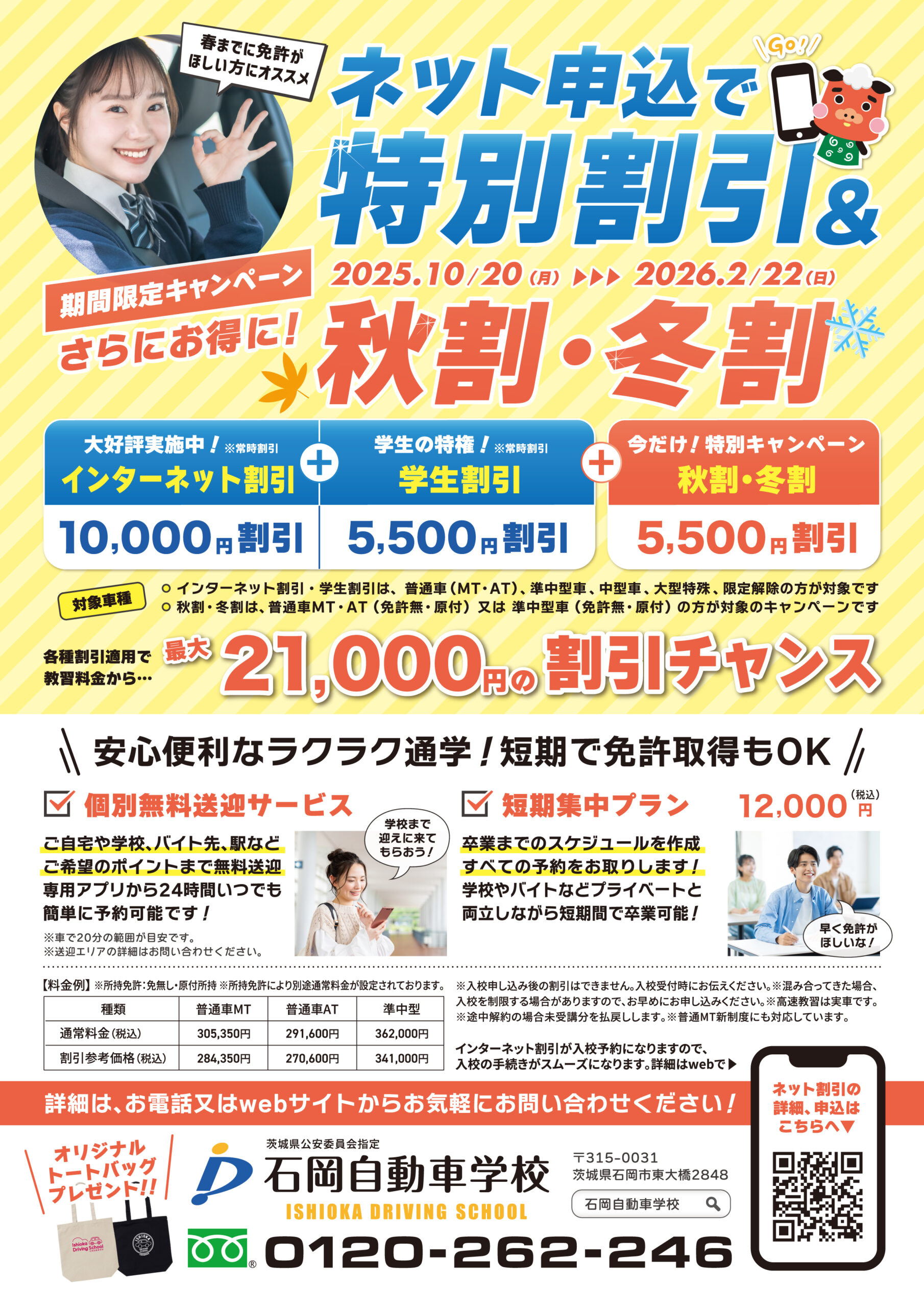普通車AT 税込291,600円(割引前) → 税込270,600円(学生割引・ネット割引・春割適用後)