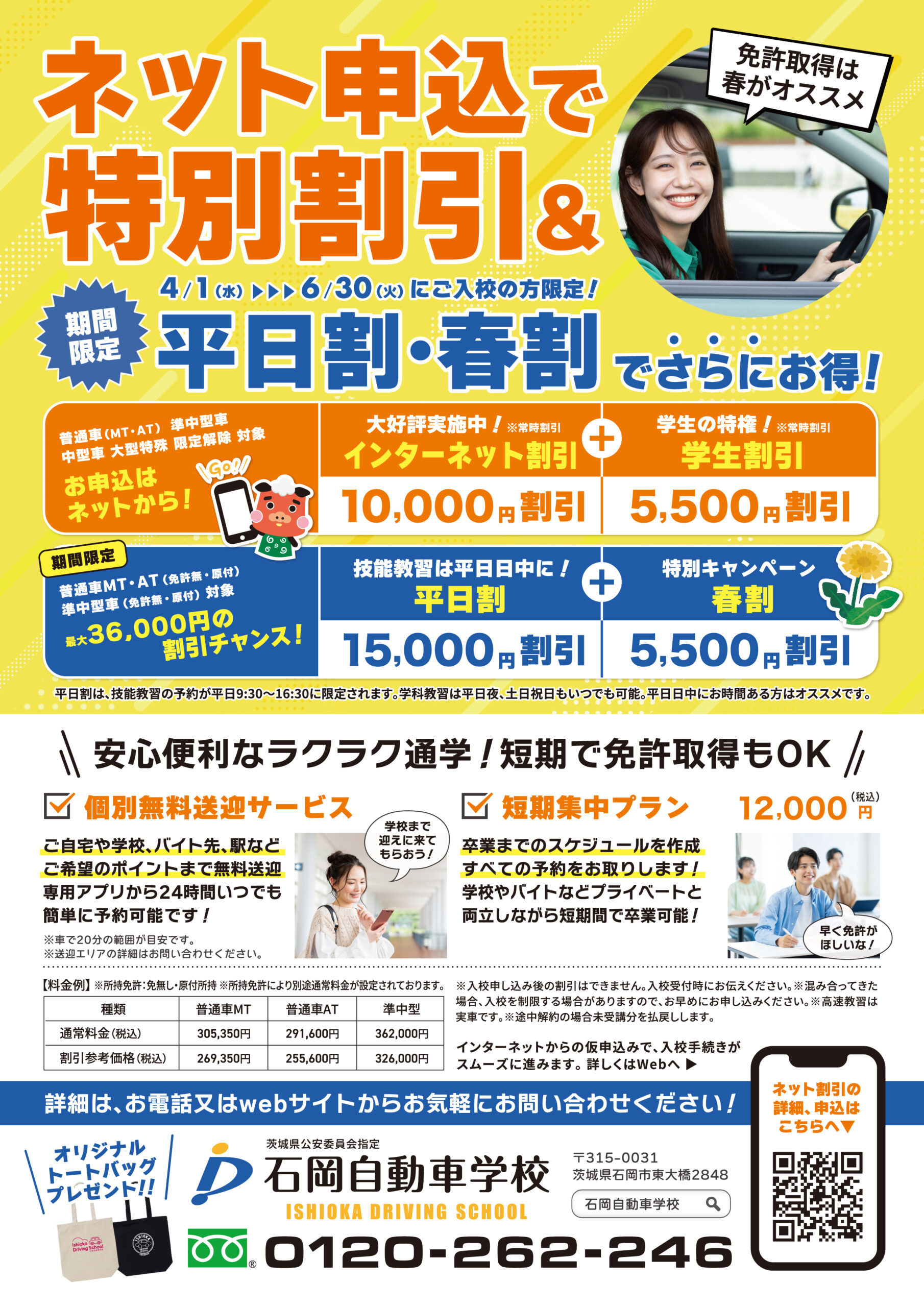 普通車AT 税込291,600円(割引前) → 税込270,600円(学生割引・ネット割引・春割適用後)