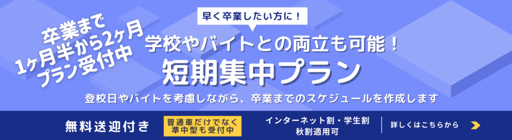 | 普通車AT車 282,600円 | 基本料金 AT291,600円 MT305,350円 ・学割(5,500円) ・ネット割(10,000円) ・秋割(5,500円)を適用 ・短期集中プラン12,000円 |